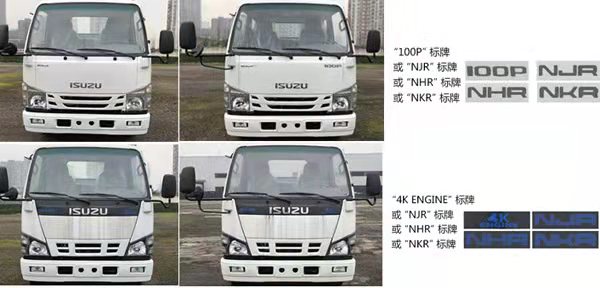 3360轴距单排五十铃1X级别可翻转100p或600p驾驶室,五十铃120马力,五档变速器,空调方向助力,ABS,中控锁,电动玻璃,多功能液晶仪表,2吨前桥4吨后桥,700R16胎,断气刹或油刹,选装4KH1CN6LB发动机时,净功率为87kW,对应VIN为:LWLDMBUG×××××××××;装4KK1N6LB发动机时,净功率为87kW,对应VIN为:LWLDMMVG×××××××××;该底盘选装制动系统:装液压制动系统时,ABS及其控制器型号/生产企业对应关系为:APG3550500A/浙江亚太机电股份有限公司,CM4YL/广州瑞立科密汽车电子股份有限公司;装气压制动系统时,ABS及其控制器型号/生产企业对应关系为:CM4XL-4S/4M/广州瑞立科密汽车电子股份有限公司;选装一种仅变化前面板、前格栅、前组合灯具的驾驶室;选装后视镜款式;选装前部标牌“4K ENGING/NJR/NHR/NKR/100P”;选装塑料脚踏板;7、选装ETC车载装置。