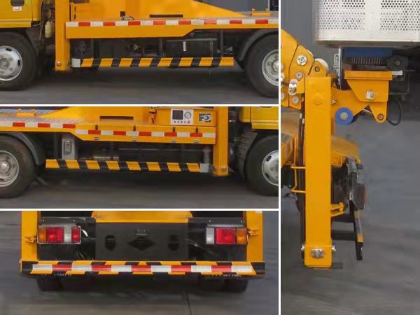 ABS型号:APG3550500A,CM4YL,CM4XL-4S/4M;ABS生产企业:浙江亚太机电股份有限公司,广州瑞立科密汽车电子股份有限公司,广州瑞立科密汽车电子股份有限公司;选装描述:随底盘选装驾驶室;选装右侧工具箱;所用材料材质、连接方式以及后部防护装置的主要尺寸参数(断面尺寸和离地高度):侧面防护及后下部防护装置材料材质:Q235,连接方式:焊接;后下部防护装置断面尺寸(宽×高):30×100(mm),离地高度:390mm;专用功能及装置:主要专用装置为伸缩臂,用于抢修电力、通讯、路灯等高空作业;后伸尺寸:320mm; |