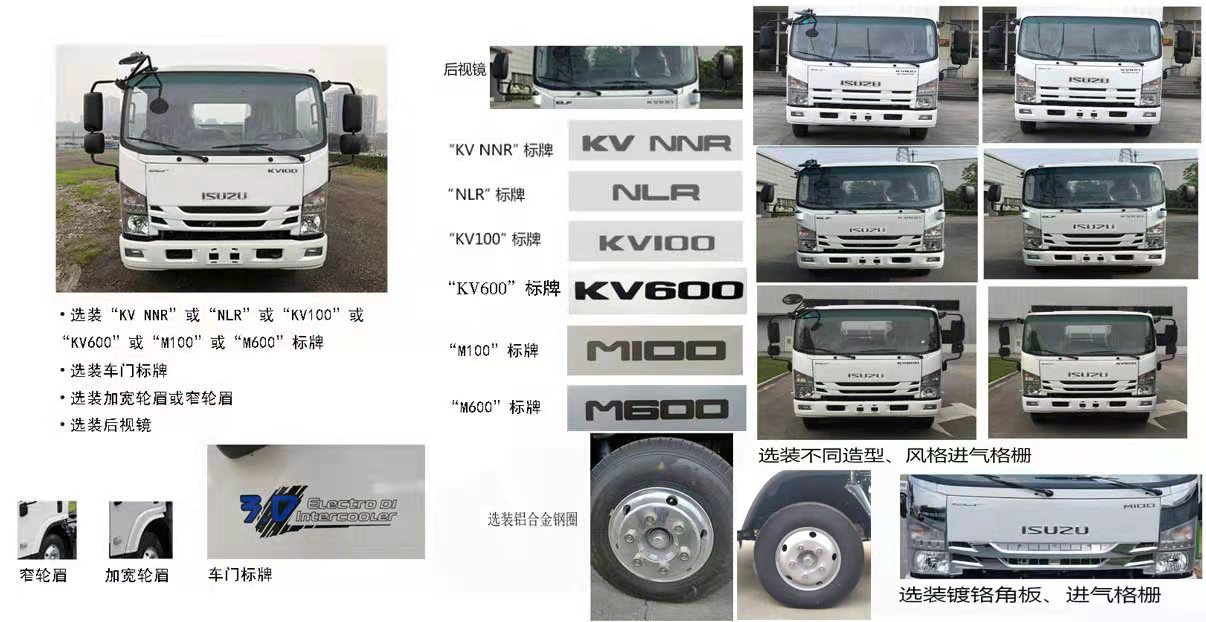 车型亮点:采用五十铃KV系或M系底盘,五十铃120马力或132马力发动机