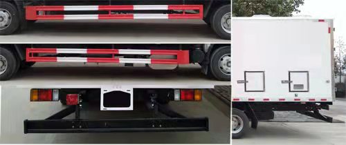 1.该车专用装置为箱体,主要用于运输一框框的雏禽,顶部封闭不可开启;2.随底盘选装驾驶室;3.防护材料:Q235A碳钢,连接方式:左右侧面均与箱体底面采用螺栓连接, 后部防护与车架采用螺栓连接,后防护断面尺寸(mm):140×50,后部防护离地高度(mm):460;4.该底盘选装制动系统:装液压制动系统时,ABS及其控制器型号/生产企业对应关系为::APG3550500A/浙江亚太机电股份有限公司,CM4YL/广州瑞立科密汽车电子股份有限公司;装气压制动系统时,ABS及其控制器型号/生产企业对应关系为:CM4XL-4S/4M/广州瑞立科密汽车电子股份有限公司;5.油耗申报值与发动机对应关系为L/100km:4HK1-TCG61/17.8,4HK1-TCG60/17.8.