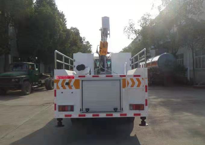该产品主要装置为随车起重机、升降平台、液压传动系统,主要用于油田抽油机等设备的检修作业;该车侧防护和后防护为裙边结构,车辆后部离地高度为480mm;ABS及其控制器型号/生产企业对应关系为::APG3550500A/浙江亚太机电股份有限公司,CM4YL/广州瑞立科密汽车电子股份有限公司;装气压制动系统时,ABS及其控制器型号/生产企业对应关系为:CM4XL-4S/4M/广州瑞立科密汽车电子股份有限公司.随底盘选装选装一种仅变化前面板、前格栅、前组合灯具的驾驶室;载货区专用于装载火车车轮. |
