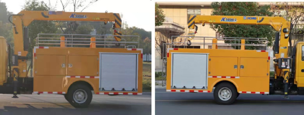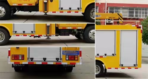 1.该车为应急救险专用车辆,专用装置为发电机组、吊机,吊机型号为SQS68-2,吊机最大起重质量为3200kg,自重为1105kg;2.防护材料:侧后防护由车身结构代替,后防护下边缘离地高460mm;3.该底盘选装制动系统:装液压制动系统时,ABS及其控制器型号/生产企业对应关系为:APG3550500A/浙江亚太机电股份有限公司,CM4YL/广州瑞立科密汽车电子股份有限公司;装气压制动系统时,ABS及其控制器型号/生产企业对应关系为:CM4XL-4S/4M/广州瑞立科密汽车电子股份有限公司;4.随底盘选装驾驶室,选装上装外形样式. |
