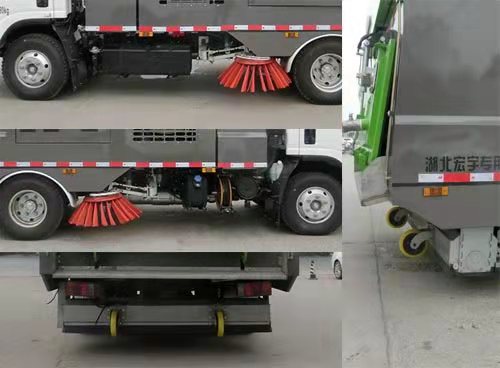 随底盘选装后视镜,轮眉,标牌,车门标牌。侧防护由专用装置代替,后防护由后部滚扫装置代替,最下端离地高190mm。ABS及其控制器型号为:APG3550500A,生产厂家为:浙江亚太机电股份有限公司;气制动对应ABS及其控制器型号为:CM4XL-4S/4M,生产厂家为:广州瑞立科密汽车电子股份有限公司。该车作为环卫设备之一,是一种集路面清扫、垃圾回收和运输为一体的新型高效清扫设备。选装扫刷形式及后部结构样式,采用选装样式时后部无滚扫装置,后防护采用冷弯型钢/Q235-B,螺栓连接。后防护截面高度尺寸100mm, 截面宽度尺寸50mm,下边缘离地高度420mm. |