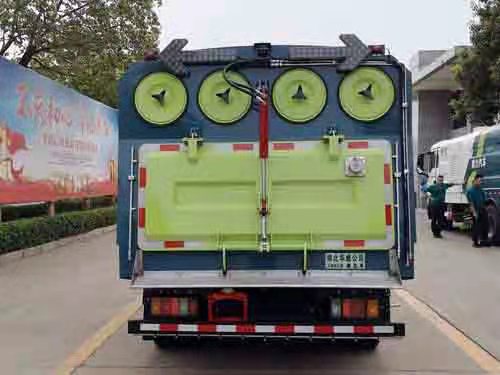 该车主要用于城市道路清洁,主要专用装置为清水箱、垃圾箱、吸盘;侧面防护装置为专用装置,后下部防护装置,材料:Q235,连接方式: 螺栓连接,断面尺寸(mm):120×60,离地高度400mm;ABS及其控制器型号为:1、CM4XL-4S/4M,生产厂家为:广州瑞立科密汽车电子股份有限公司;2、APG3550500A,生产厂家为:浙江亚太机电股份有限公司.选装尾部铝合金花纹板脚踏板,铝合金的挡泥板,选装箱体结构,选装侧防护结构样式 |