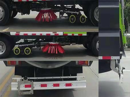随底盘选装驾驶室。该车主要专用装置为扫刷,吸盘,喷嘴,垃圾箱,水箱,主要用于道路洗扫作业.侧面防护装置为专用装置,后下部防护装置,材料:Q235,连接方式:螺栓连接,断面尺寸(mm):235×60,离地高度430mm。ABS型号及生产厂家为:CM4XL-4S/4M/广州瑞立科密汽车电子股份有限公司。 |