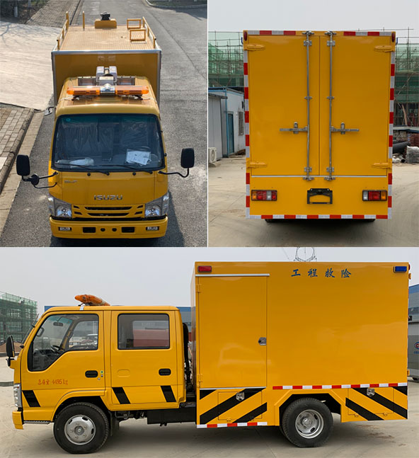 厢体内专用装置是发电机机组,远距离输电装置,电焊机以及应急抢险抢修时必备的光源,电源设备等工具;侧面防护及后面防护装置采用Q235碳钢,裙边结构构成,后防护断面尺寸(mm):100×45,离地高度:330mm;随底盘选装制动系统:装液压制动系统时,ABS及其控制器型号/生产企业对应关系为:APG3550500A/浙江亚太机电股份有限公司,CM4YL/广州瑞立科密汽车电子股份有限公司;装气压制动系统时,ABS及其控制器型号/生产企业对应关系为:CM4XL-4S/4M/广州瑞立科密汽车电子股份有限公司;随底盘选装驾驶室,选装外观. |