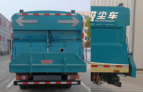 选装箱体样式和后门样式;选装后部带垃圾斗装置;随底盘选装驾驶室;侧防护由专用装置吸盘,油箱,工具箱等代替,后防护材料Q235,焊接连接,后防护截面高度尺寸120mm,截面宽度尺寸50mm,下边缘离地高度430mm;装气压制动系统,ABS及其控制器型号/生产企业:CM4XL-4S/4M/广州瑞立科密汽车电子股份有限公司;专用装置主要由水箱,风机,吸盘组成,用于路面吸尘作业. |