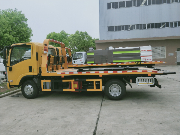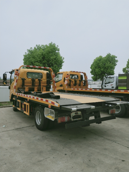 上装配置:蓝牌冲压平板,伸缩式尾板:1个40KN绞盘(配25米钢丝绳),1个工具箱,配2个小车,1对L型抱胎架,4根捆绑带,1对托叉及托叉座,1条链钩。海战力油缸,海德液压阀。