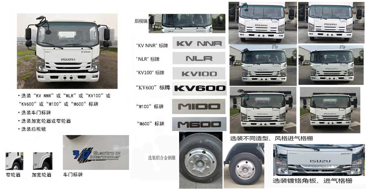 | 其它: | 1、该底盘选装发动机:装4KH1CN6LB型发动机时,净功率为87kW,VIN为LWLDMBUG×××××××××,装4KH1CN6HB型发动机时,净功率为96kW,VIN为LWLDMBEG×××××××××,仅装配气压制动系统;装4KK1N6LB型发动机时,净功率为87kW,VIN为LWLDMMVG×××××××××;2、该底盘选装制动系统:装液压制动系统时,ABS及其控制器型号/生产企业对应关系为::APG3550500A/浙江亚太机电股份有限公司,CM4YL/广州瑞立科密汽车电子股份有限公司;装气压制动系统时,ABS及其控制器型号/生产企业对应关系为:CM4XL-4S/4M/广州瑞立科密汽车电子股份有限公司;3、该底盘外形尺寸长=前悬+轴距+后悬对应关系为:5995=1110+3360+1525,5875=1120+3365+1390;4、该底盘选装前部标牌、选装轮眉;5、前/后轮距对应关系:1685/1525、1640/1525、1640/1655、1690/1655;6、该底盘选装驾驶室后部开口;7、轮胎可选装铝合金钢圈;8、装MYY-6S变速器时可选装速比5.857;9、选装燃油箱安装位置,燃油箱布置在车辆左侧;10、该车型可选装ETC车载装置。 | ||