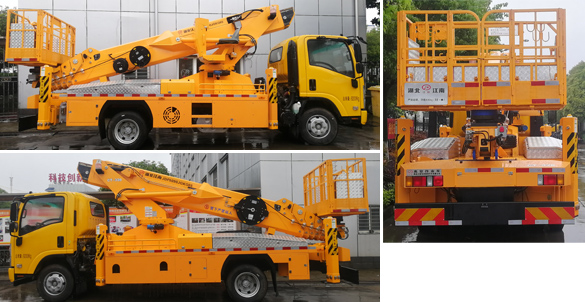 外形尺寸长/后伸对应关系(mm):7330/350,6980/无后伸;选装整车外观;侧面防护及后下部防护装置材料材质:Q235,侧面防护装置为整体式结构,后下部防护连接方式:焊接加螺栓连接,断面尺寸(宽×高):50×260(mm),离地高度:400mm;ABS及控制器型号为:APG3550500H1,生产厂家为:浙江亚太机电股份有限公司;主要专用装置为升缩臂,用于抢修电力、通讯、路灯等高空作业. |